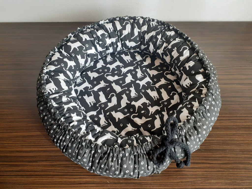 * Stažení mantinelů lze jednoduše upravit (utáhnout/povolit šňůru).* Tip na snadnou údržbu: přetočit pelech vnitřní stranou ven a chlupy, které samy nevypadnou, vyčesat kartáčem na srst.