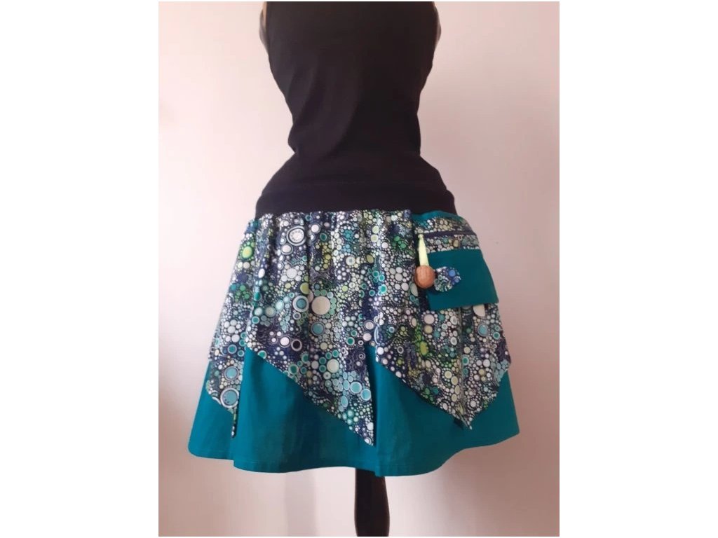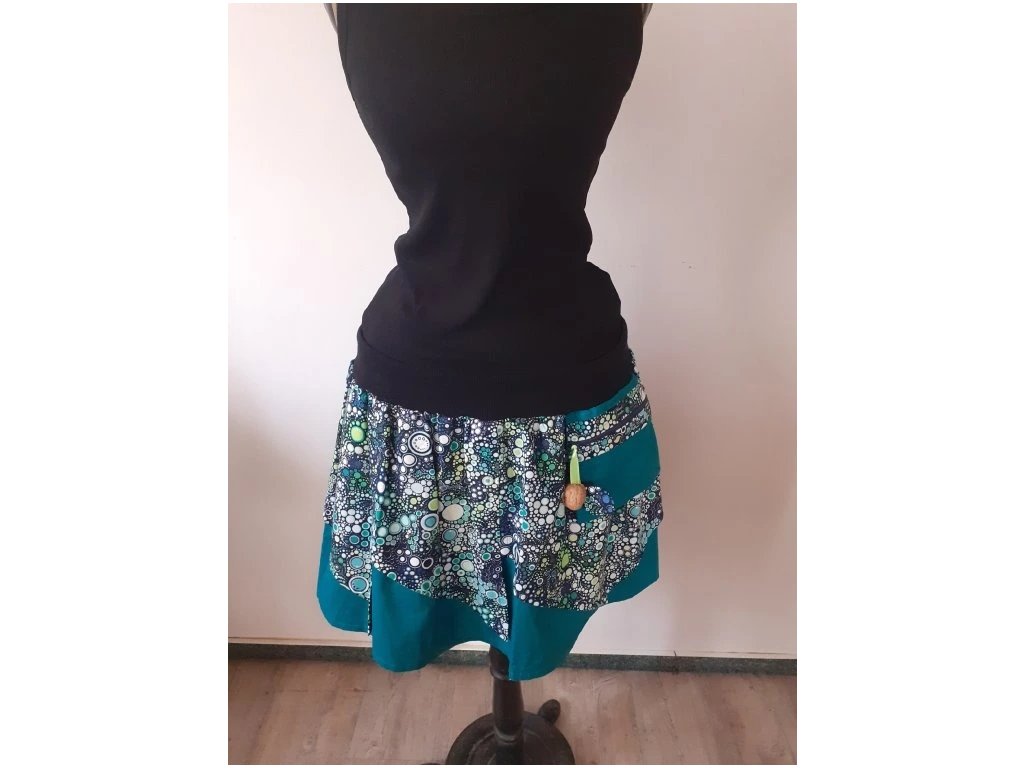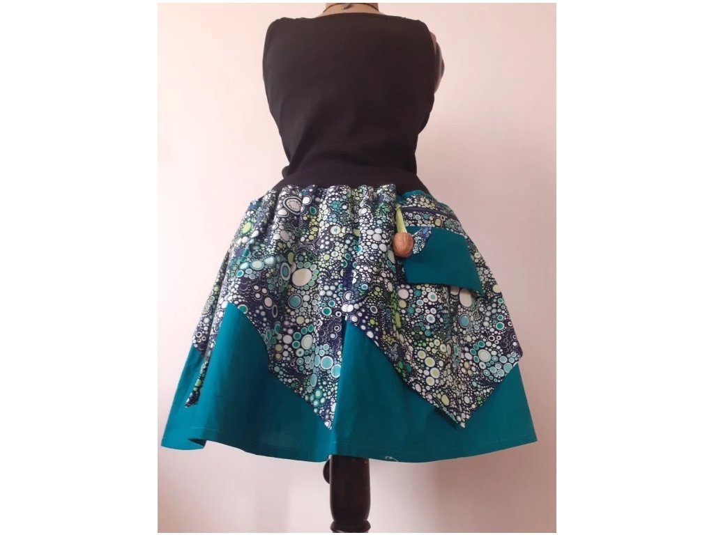 * náplet + šňůrka - umožňuje výběr posazení sukně na boky nebo do pasu, také vyhovuje výkyvům na váze +-10kg